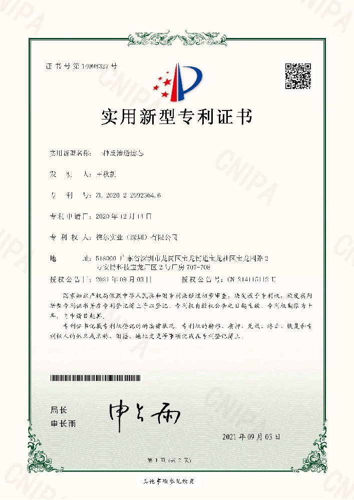 6. 反滲透濾芯實(shí)用新型專利證書